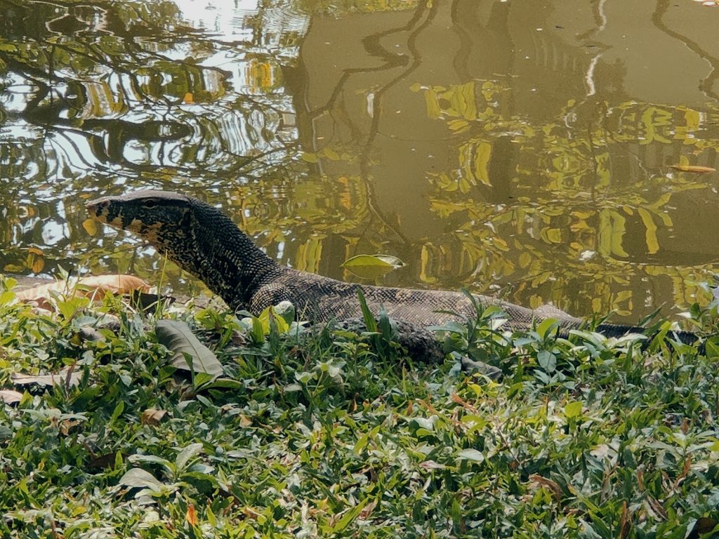 Pour s’y rendre on traverse un jardin public et on se rafraîchit un peu à l’ombre des arbres. On y croisera nos premiers varans… On se demandait bien ce que c’était au début quand on a vu surgir cette forme mi serpent/mi crocodile 🤣