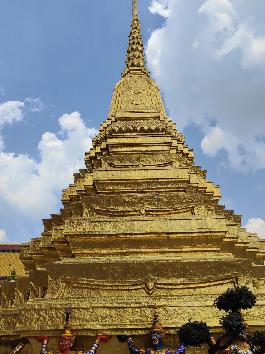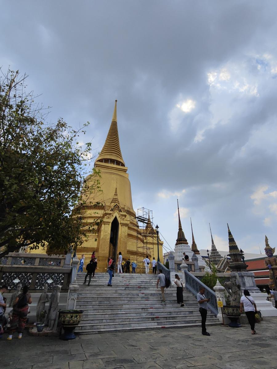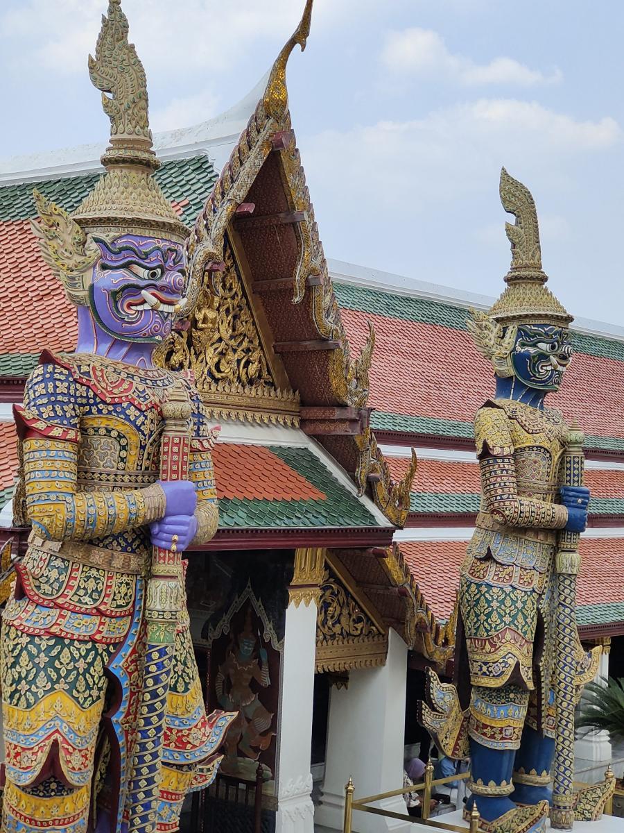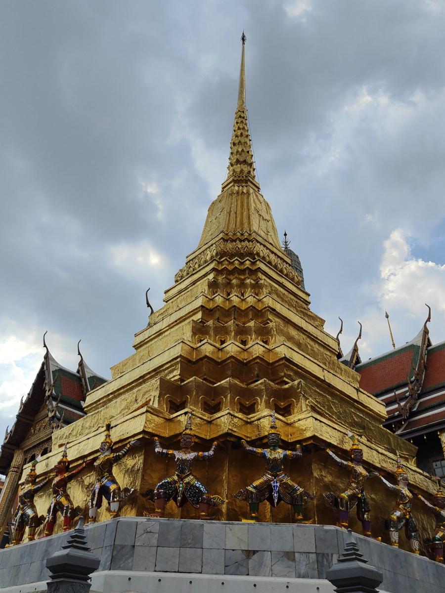 On se dirige vers Wat Phra Kaew et le grand palais. Ce temple renferme le Bouddha d’émeraude (qu’il est interdit de prendre en photo mais nous avons pris le temps de le photographier dans nos têtes) ainsi que l’ancienne résidence royale, le grand palais.