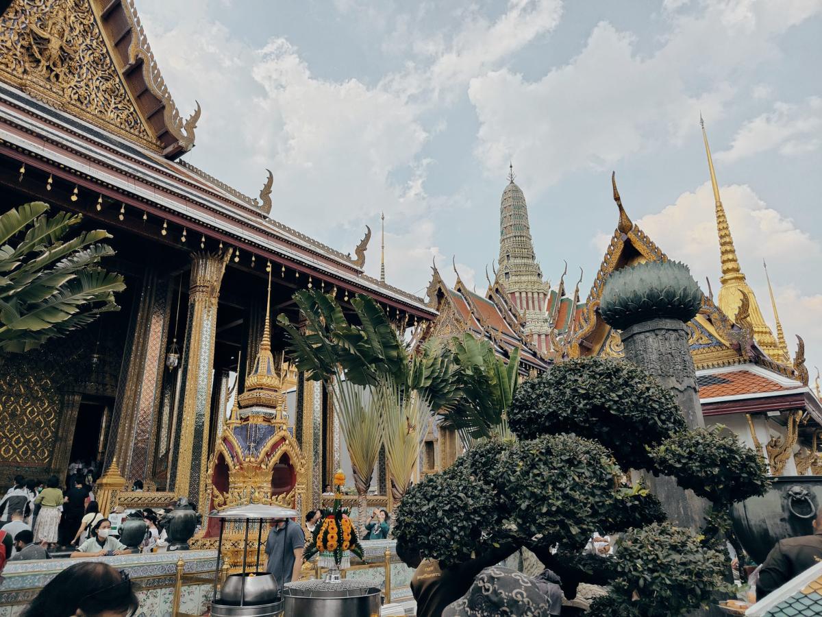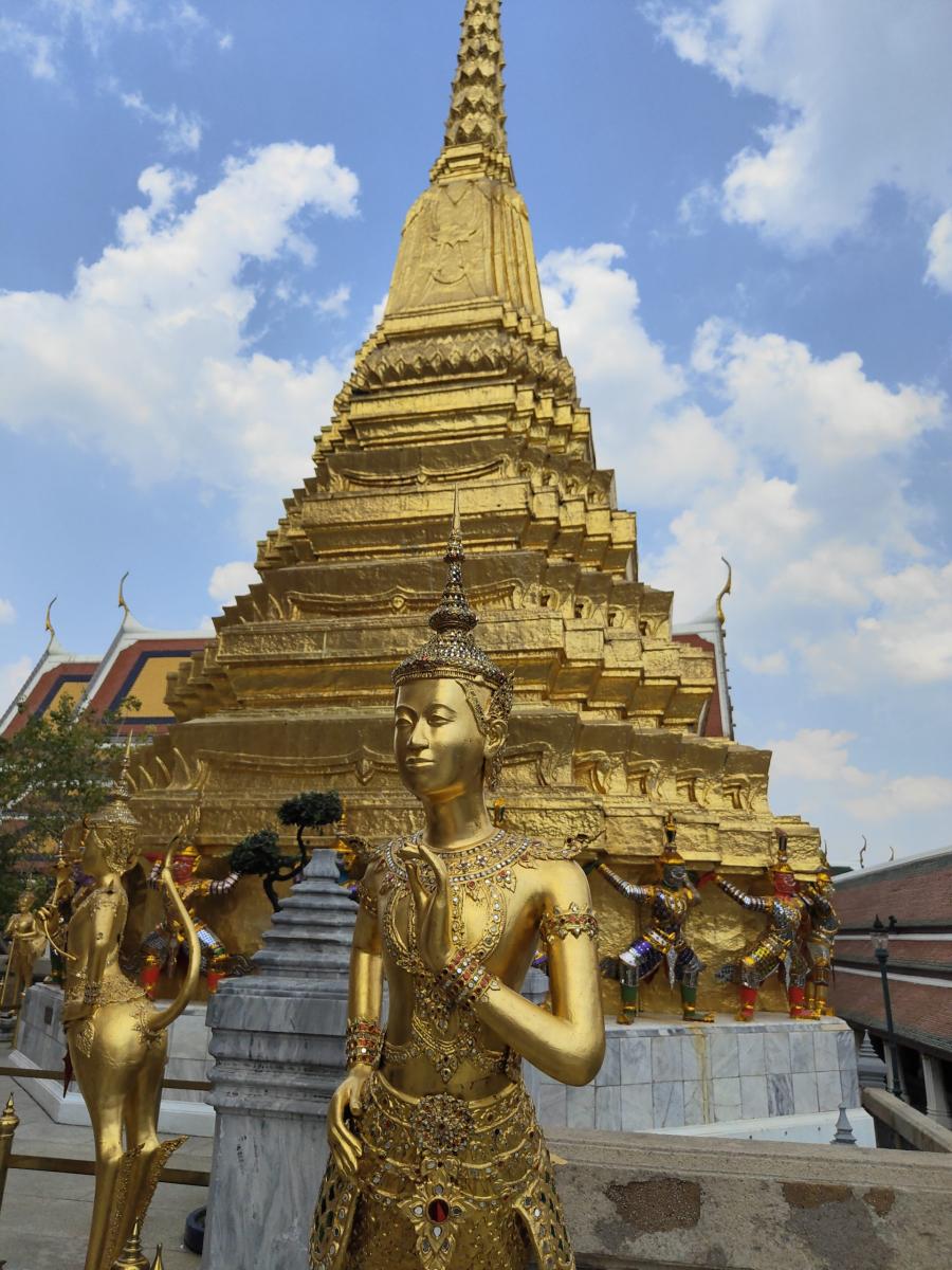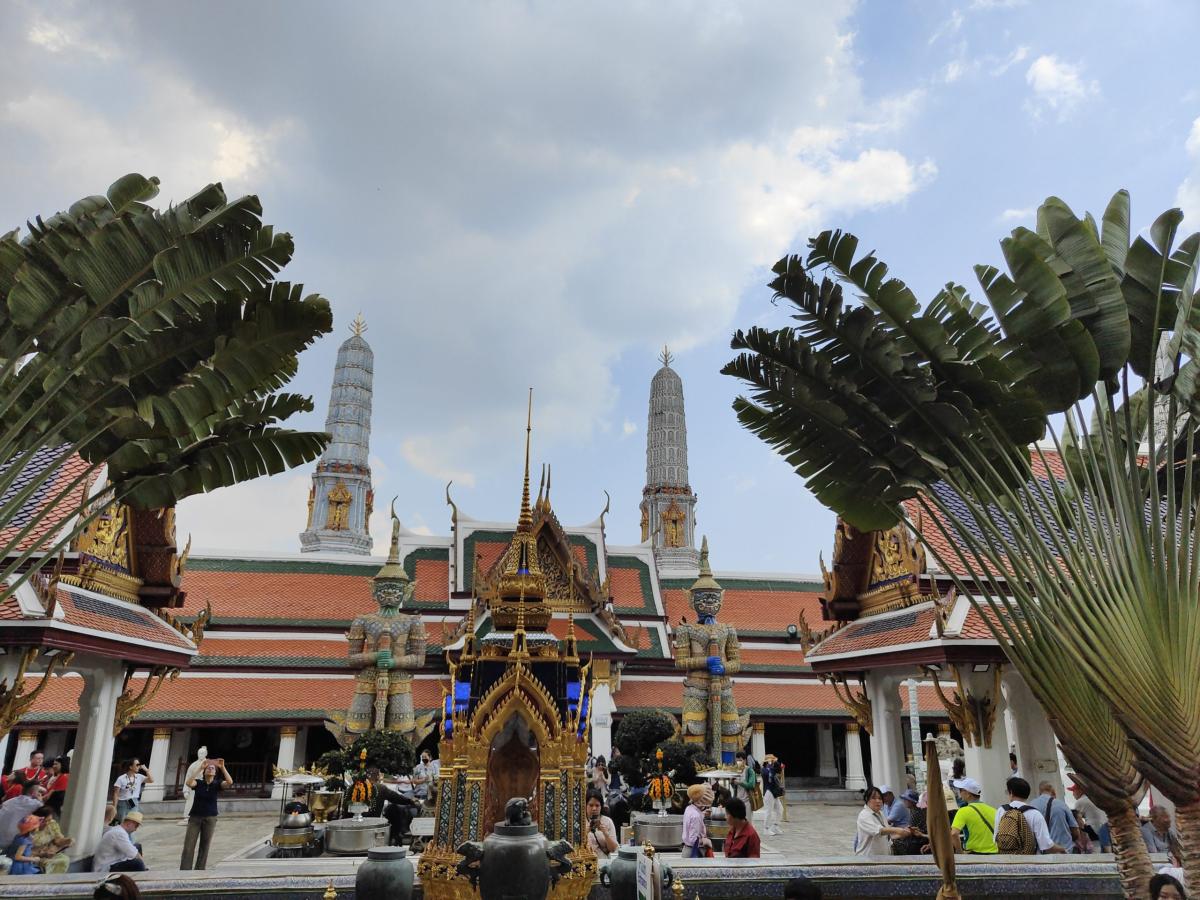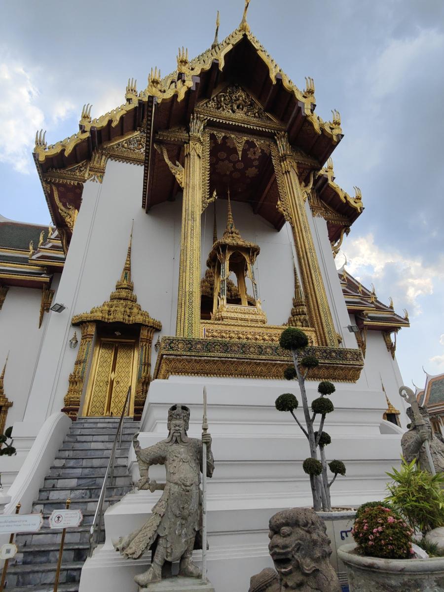On se dirige vers Wat Phra Kaew et le grand palais. Ce temple renferme le Bouddha d’émeraude (qu’il est interdit de prendre en photo mais nous avons pris le temps de le photographier dans nos têtes) ainsi que l’ancienne résidence royale, le grand palais.