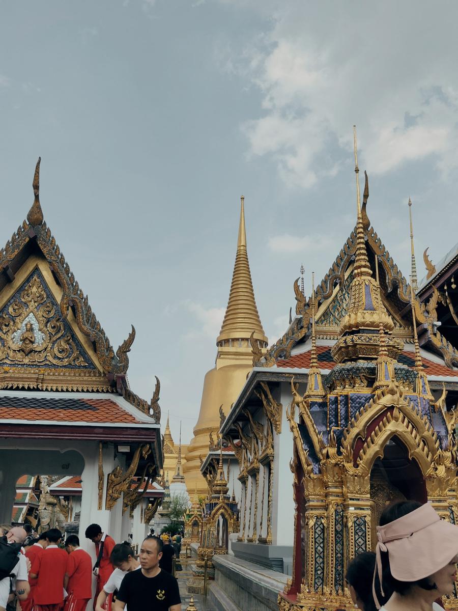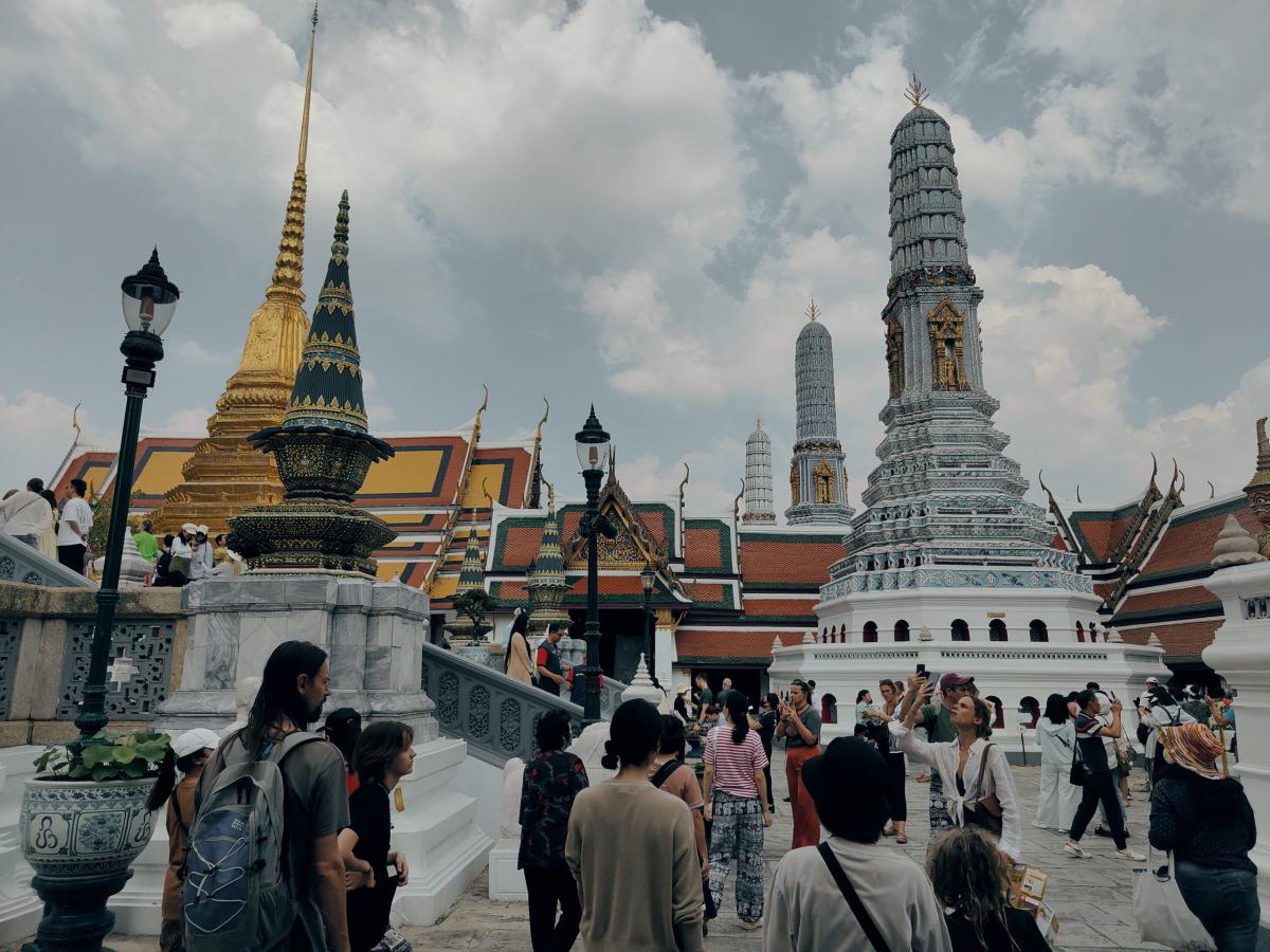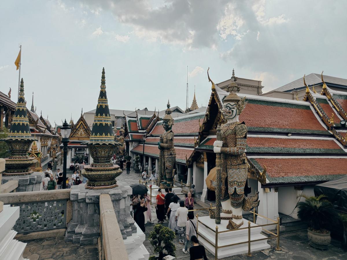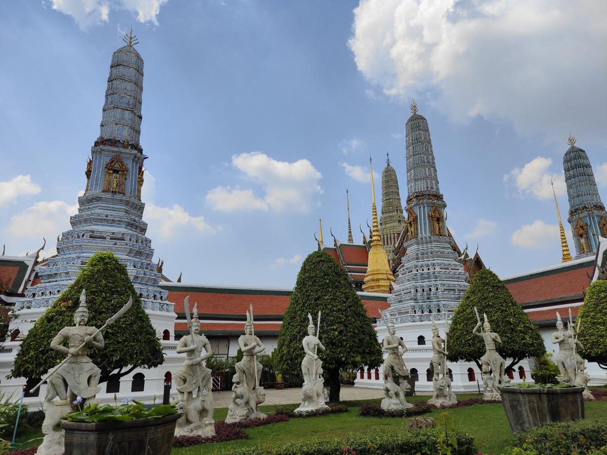 On se dirige vers Wat Phra Kaew et le grand palais. Ce temple renferme le Bouddha d’émeraude (qu’il est interdit de prendre en photo mais nous avons pris le temps de le photographier dans nos têtes) ainsi que l’ancienne résidence royale, le grand palais.