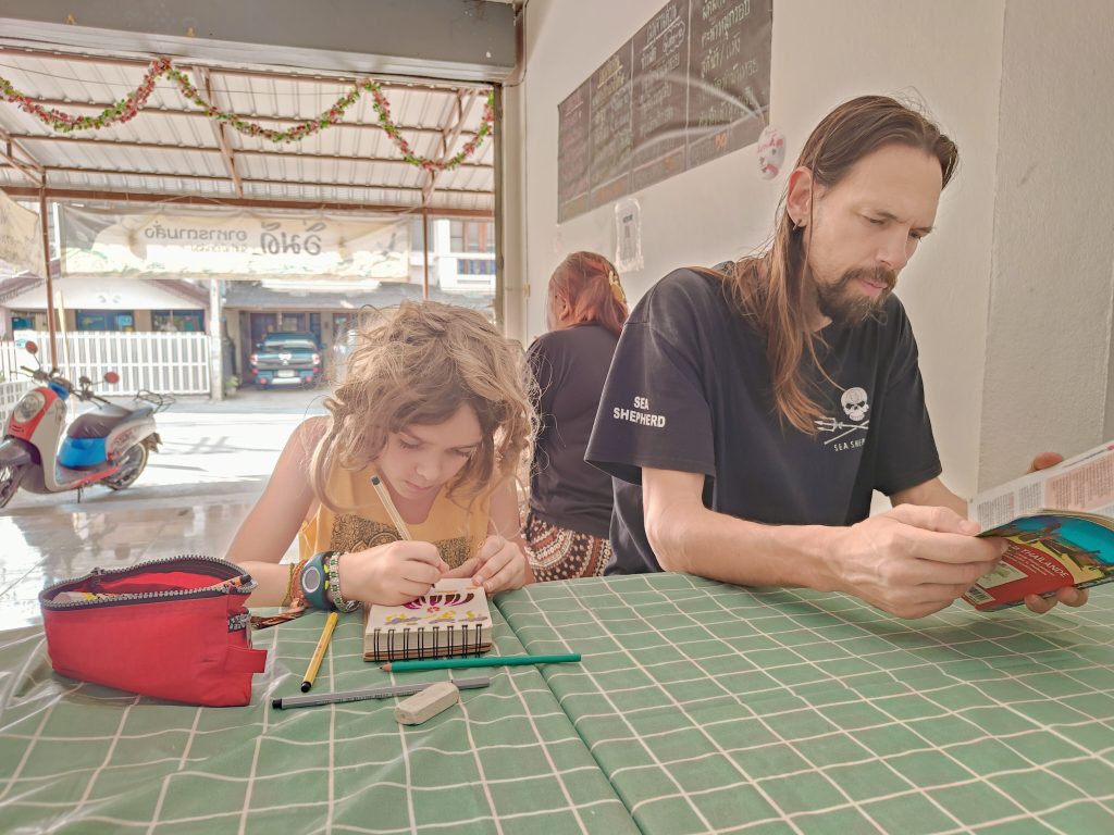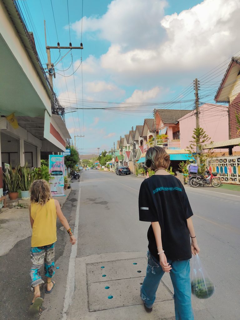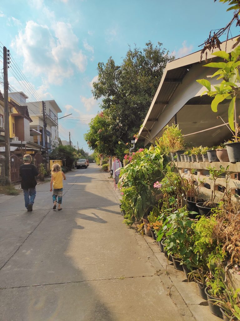On part se balader dans le quartier… C’est un quartier où ne vivent que les thaïlandais… Et qui nous rappelle beaucoup Tahiti… Notre rue… wow… Ça nous fait quelque chose d’être ici ! C’est tout simple et au plus près des locaux…