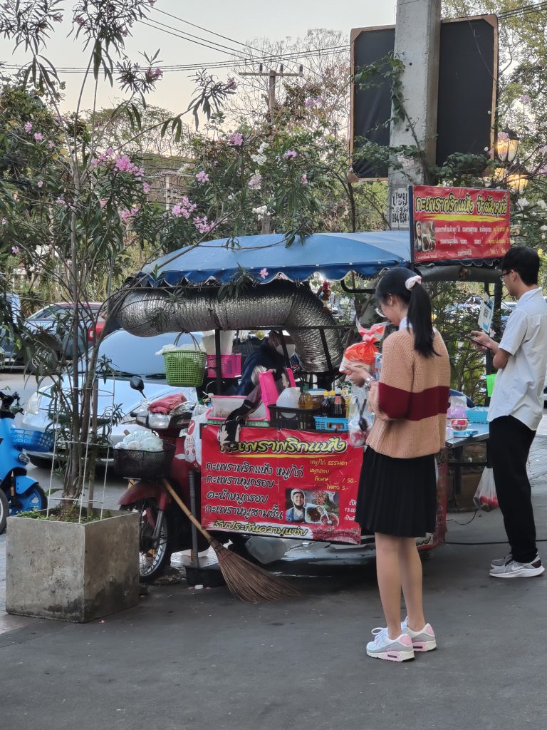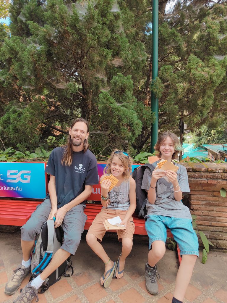 On mangera tranquillement et on se mettra à la recherche de wifi afin d’avoir du réseau pour commander un taxi via l’application Maxim… C’est une application qui fonctionne très bien sur Chiang Mai et qui permet d’avoir des taxis bon marché pour les longues distances, notre logement étant à la périphérie de la ville…