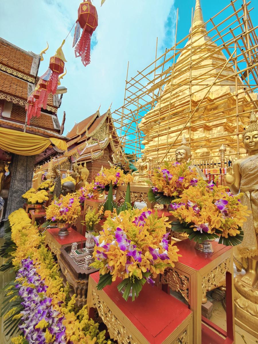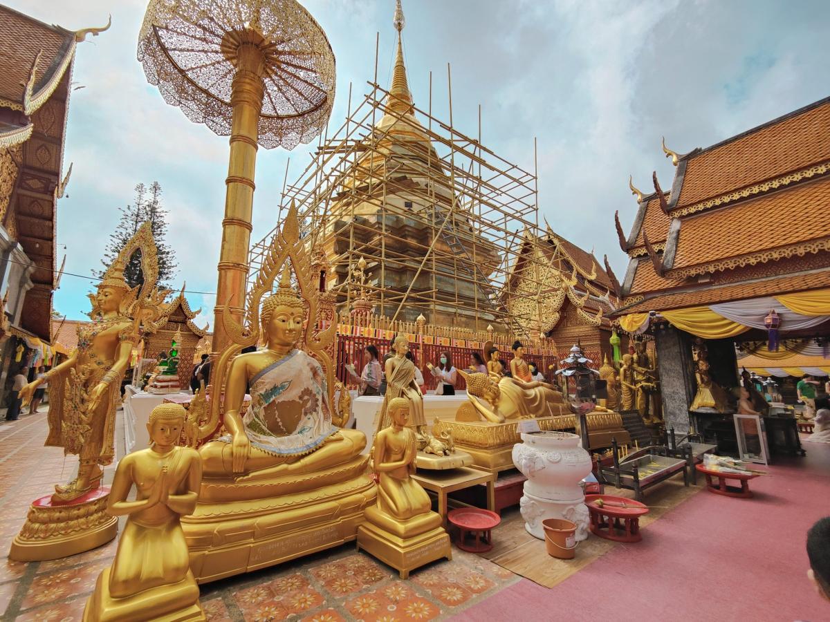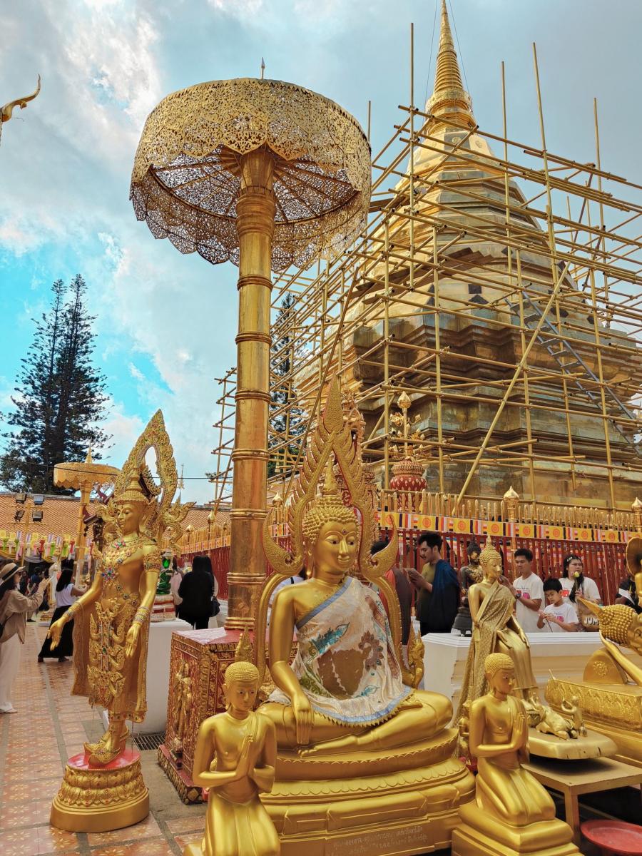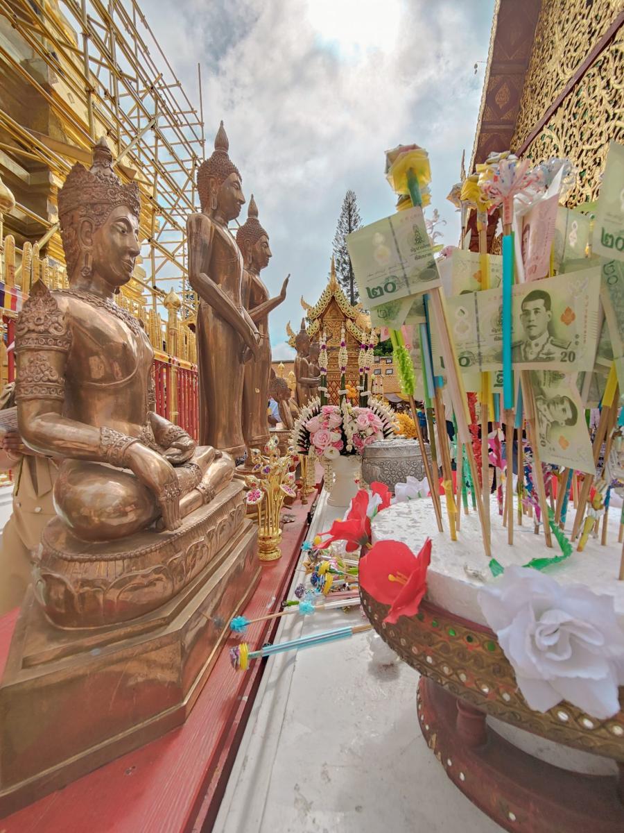 Aujourd’hui nous nous levons de bonne heure pour aller nous balader au Doi Suthep. C’est un parc national proche de Chiang Mai qui renferme entre autre le Wat Phra that doi Suthep, un des temples les plus veneré et emblématique du pays.