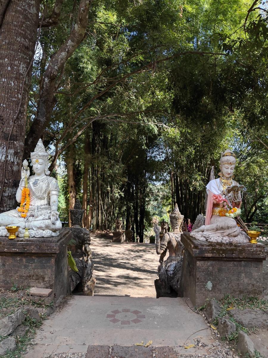 Des statues ici et là dans la forêt, des plantes et des minis temples sur l’eau…